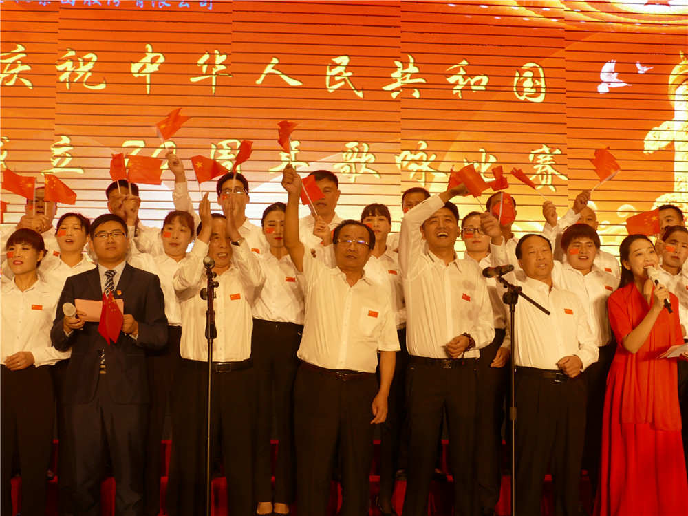 活動(dòng)在全體合唱《歌唱祖國(guó)》的歌聲中達(dá)到高潮。集團(tuán)公司主要領(lǐng)導(dǎo)登臺(tái)同全場(chǎng)員工舞動(dòng)起鮮艷的五星紅旗,共同歌唱祖國(guó),歌唱美好的新時(shí)代。
