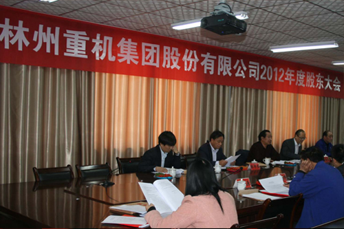2013年4月16日下午14時(shí),林州重機(jī)集團(tuán)股份有限公司2012年度股東大會(huì)在公司一樓會(huì)議室以現(xiàn)場投票和網(wǎng)絡(luò)投票相結(jié)合的方式召開,參加本次股東大會(huì)的股東及股東代表共24人,代表公司股份328,572,401股,占公司有表決權(quán)股份總數(shù)的61.0356%,其中,現(xiàn)場出席會(huì)議的股東及股東代表14人,代表股份328,309,380 股,占公司有表決權(quán)股份總數(shù)的60.9867%;通過網(wǎng)絡(luò)投票方式參加會(huì)議的股東10人,代表股份263,021股,占公司有表決權(quán)股份總數(shù)的0.0489%。