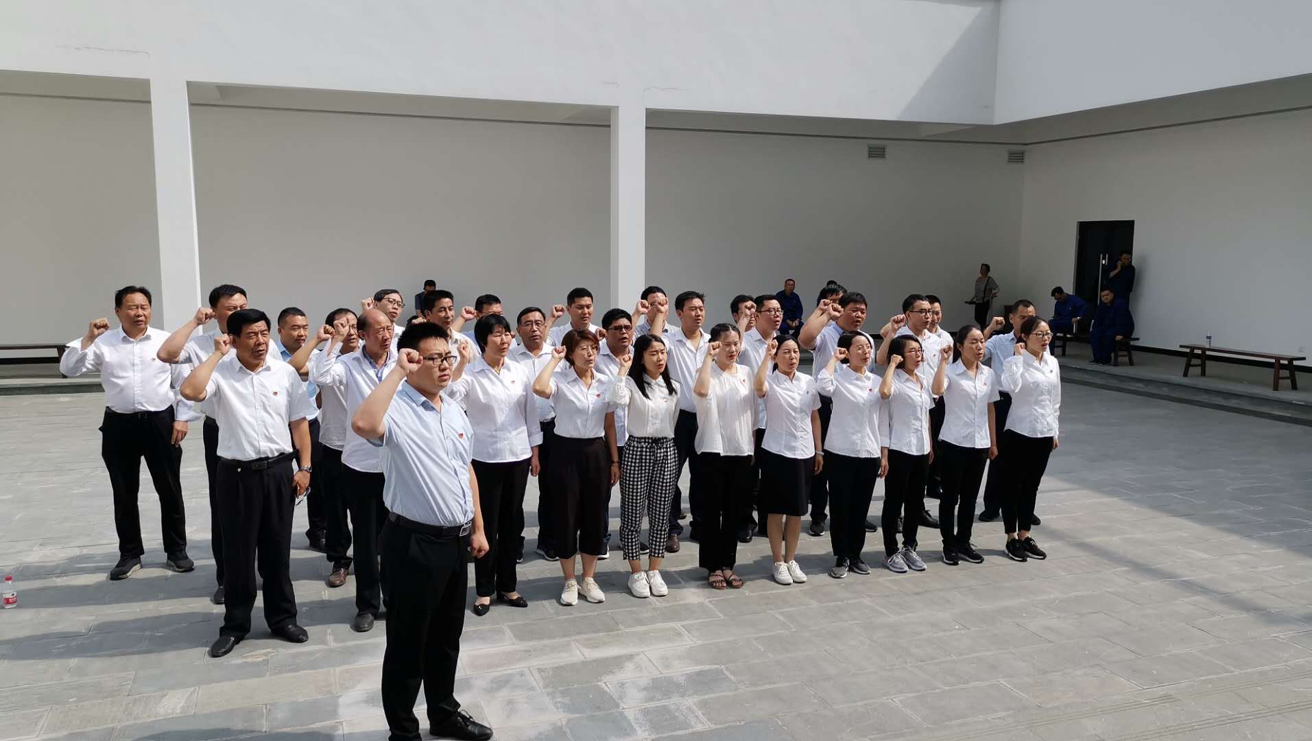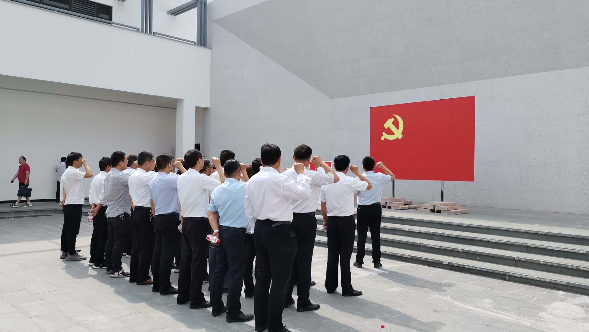 現(xiàn)場參觀學習結束后,全體黨員面對鮮紅的黨旗,集體宣誓,重溫入黨誓詞,堅定理想信念,提升思想境界。