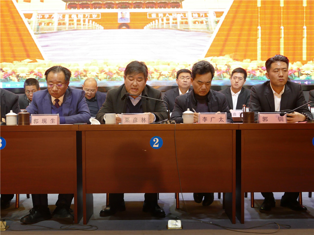 會議在雄壯的國歌聲中拉開序幕。公司董事、總經理郭釧作了題為《求生存,謀發展,砥礪奮進》的年度工作報告。報告全 面回顧總結了2019年度的工作和存在的不足,并明確了2020年公司經營目標和發展方向。郭釧總經理在報告中特別提到在2019年與公司同舟共濟,共渡難關中涌現出的不畏艱難、敢于擔當和奉獻的模范人物,對他們表示衷心的感謝。