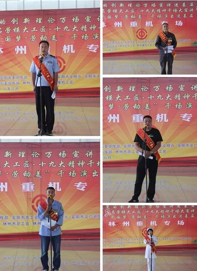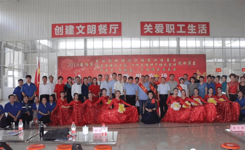 6月6日下午,安陽市黨的創新理論萬場宣講進基層、百名勞模大工匠?十九大精神千場大宣講暨“中國夢 勞動美”千場演出送基層巡回演出活動走進林州重機。河南省委宣傳部副部長尹書博,省委宣傳部理論處副處長楊小強,省委宣傳部理論教育講師團副團長趙琳,安陽市委宣傳部副部長冀曉東,安陽市委宣傳部理論科長龍晨曦,安陽市總工會宣教部部長張艾敏,林州市委常委、宣傳部長王獻青,林州市總工會主席栗旺生,副主席張曉云, 公司黨委副書記、副總經理趙正斌,黨委委員、工會主席路建存及職工代表300余人等出席活動。