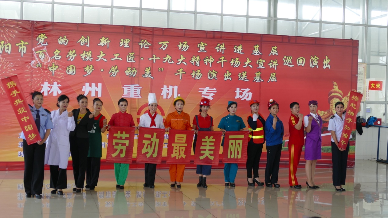 一曲催人奮進的《咱們工人有力量》拉開本次匯演的序幕。表演節目有快板、小品、歌舞、工裝秀等多種形式,演員們各展才藝,精彩不斷,把十九大報告、金秋助學等內涵形象生動地展現給職工;贊揚林州人民不甘落后、勇于爭先精神的《推車歌》把演出推向高潮;全國、省、市的5位勞模現場宣講將新時代的“勞模精神”展現的淋漓盡致。整場活動營造出一片歡樂祥和的氣氛,在為公司職工獻上一場豐富視覺盛宴的同時,演出也將勞模工匠宣講黨的創新理論和十九大精神與“千場演出送基層”活動有機結合起來,讓職工在一場場演出活動中學習、領悟十九大精神的“真諦”。
